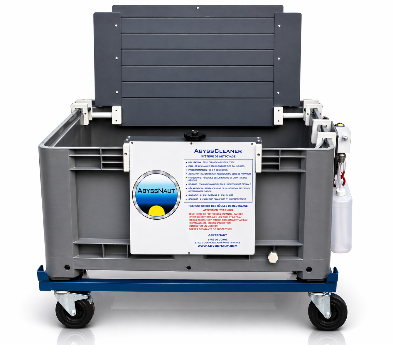 La cuve de nettoyage AbyssNaut est un outil rationnel, simple et fiable, parfaitement adapté à l’entretien, le nettoyage et la désinfection des vêtements de plongée en néoprène.
