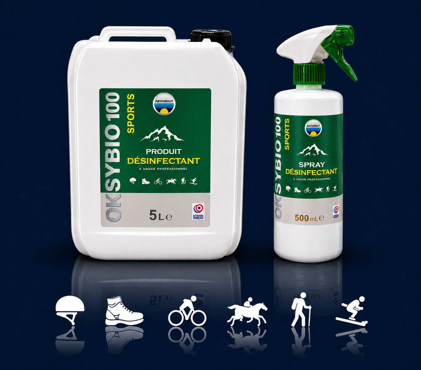 Le produit Oksybio 100-EcoSterix Sport permet une excellente désinfection du matériel à usage sportif: