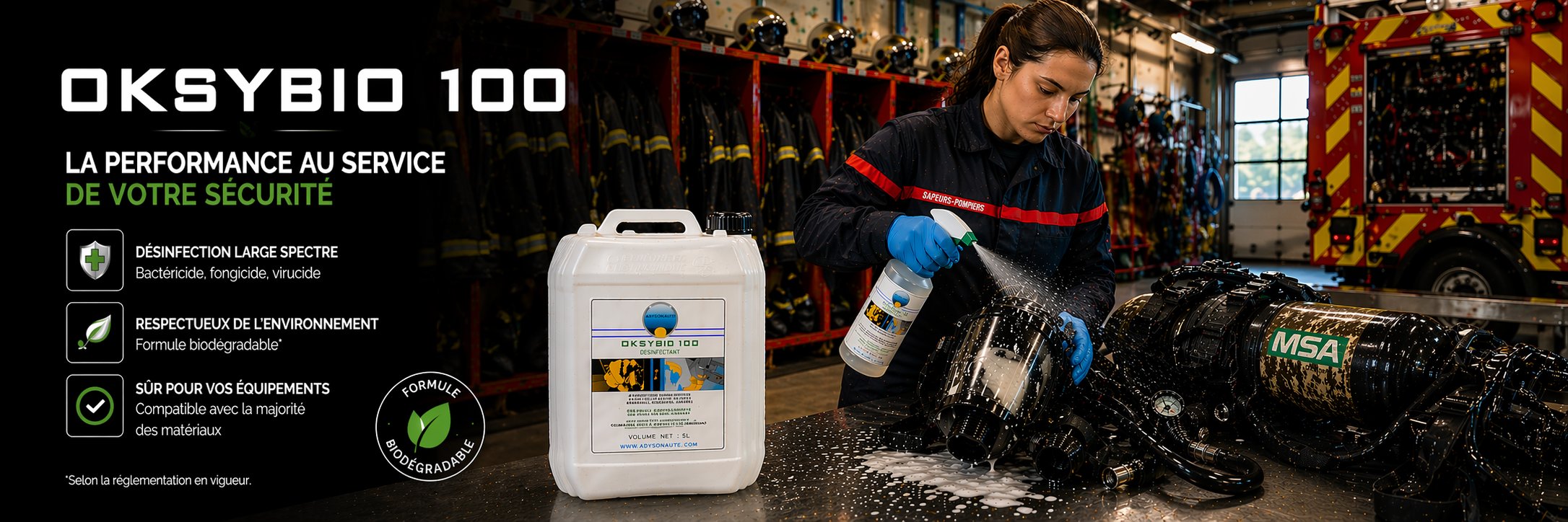 Oksybio 100 Sécurité est un désinfectant professionnel conçu pour assurer une hygiène irréprochable des EPI pompier, des ARI et de tout équipement nécessitant une désinfection rigoureuse. Spécialement adapté aux exigences des SDIS et des équipes de secours, il garantit la fiabilité et la sécurité des matériels d’intervention.