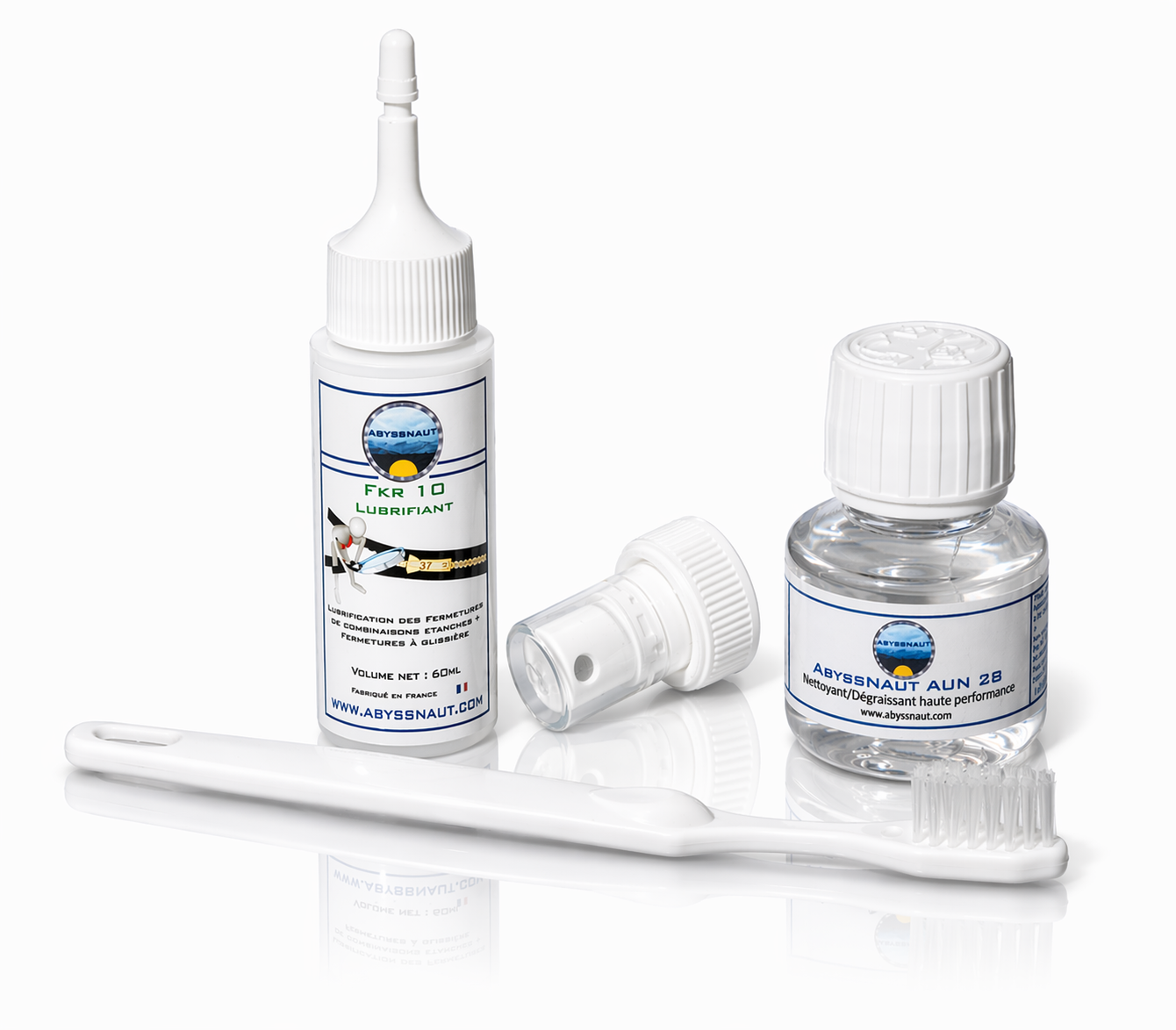 Un duo pour l’entretien des fermetures à glissière des combinaisons sèches et humides de plongée, combinaison semi-étanche, métal ou plastique et toute fermeture éclair : limite l’encrassement de la fermeture et favorise son utilisation et sa longévité !