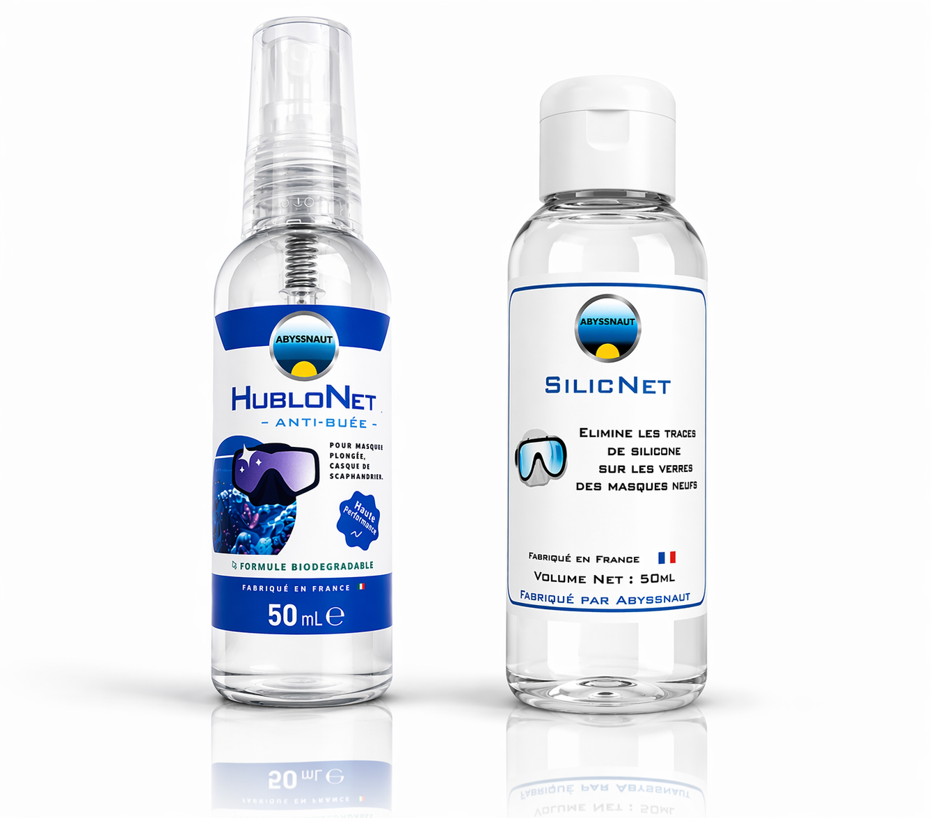 Le produit anti-buée HubloNet évite la formation de buée sur les masques de plongée.